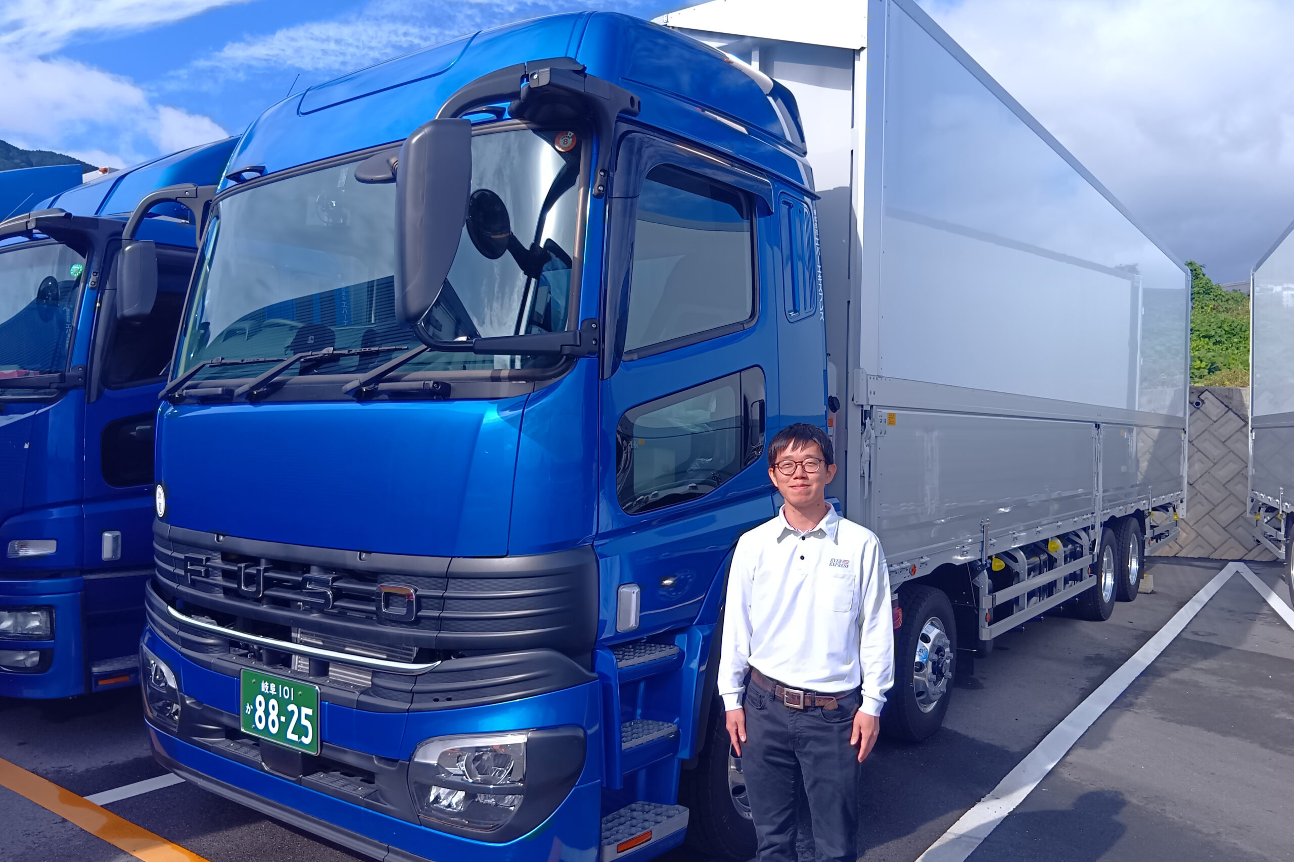 前職は介護の仕事をしていましたが、運転が好きで大型車両を運転するドライバーに憧れがあり、大型免許を取得。入社の決め手は体験添乗の際に先輩方が優しかった事、オートマ車が多く、トラックがブルーで格好良かったです。